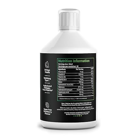 Sản phẩm High Strength 10,000mg Marine Collagen for Skin, Hair, Nails and Joints | Hydrolysed Collagen Pure Peptides Drink Infused Hyaluronic Acid | Vitamin C, D and Biotin, Sugar Free Strawberry đang được bán với giá ưu đãi là $24.3615 tại nước Anh.