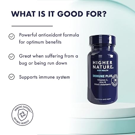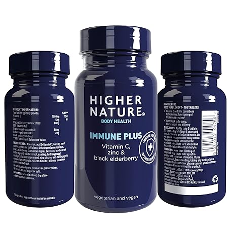 Sản phẩm HIGHER NATURE Immune Plus - Vitamin C, Zinc & Black Elderberry - Supports Immune System - Vegetarian and Vegan Multivitamin - 180 Capsules đang được bán với giá ưu đãi là $30.847 tại nước Anh.