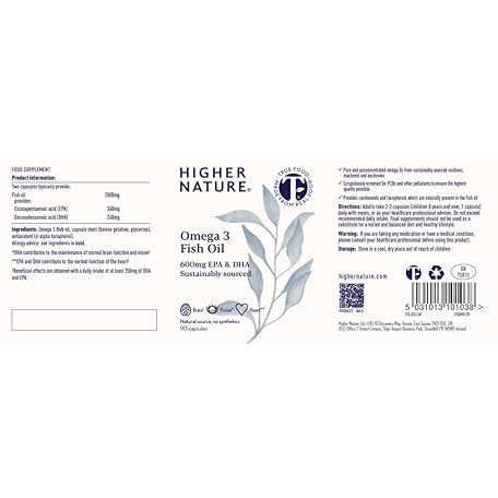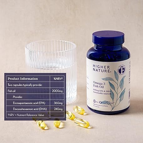 Sản phẩm Higher Nature - Omega 3 1000mg Fish Oil Capsules - Eye Health & Brain - 180mg EPA - 120mg DHA - 90 Capsules đang được bán với giá ưu đãi là $17.7997 tại nước Anh.