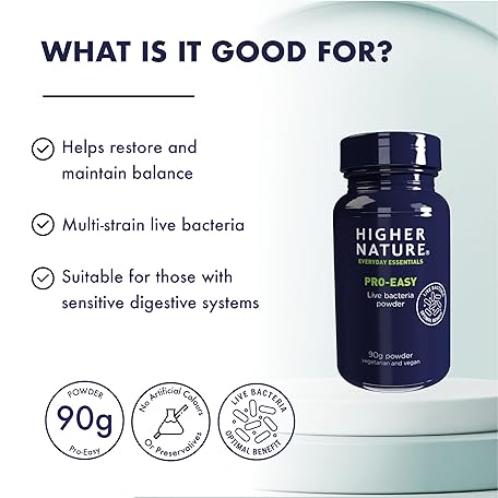 Higher Nature - Pro-Easy - Multi-Strain Live Bacteria Powder - Probiotics for Gut Health - Suitable for The Whole Family - 90g Powder