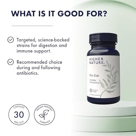 Sản phẩm HIGHER NATURE Pro Gut - High Strength Probiotic Cultures - Multi-Strain Probiotic for Digestive System - Everyday Live Bacteria - 5 Billion CFUs - for Good Gut Flora, Gas & Bloating - 30 Capsules đang được bán với giá ưu đãi là $18.6717 tại nước Anh.