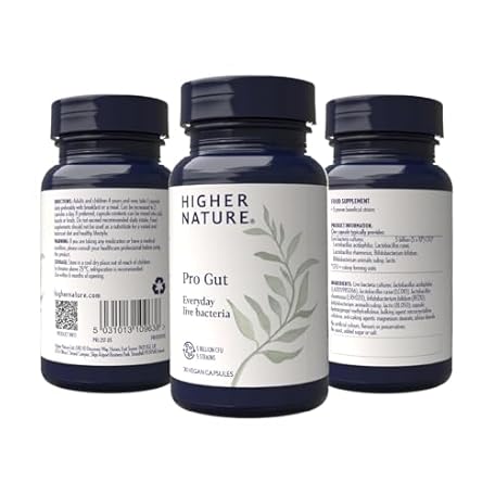 Thông tin sản phẩm HIGHER NATURE Pro Gut - High Strength Probiotic Cultures - Multi-Strain Probiotic for Digestive System - Everyday Live Bacteria - 5 Billion CFUs - for Good Gut Flora, Gas & Bloating - 30 Capsules