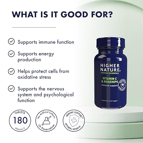 Thương hiệu HIGHER NATURE là cái tên nổi tiếng được rất nhiều khách hàng trên thế giới chọn lựa. Với kiểu dáng đẹp mắt, sang trọng, sản phẩm Higher Nature - Vitamin C & Rosehips - for Immunity - 1000mg Vitamin C - Immune System Support - Vegetarian & Vegan - 180 Tablets  là sự lựa chọn hoàn hảo nếu bạn đang tìm mua một món  cho riêng mình.