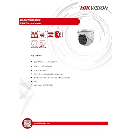 HIKVISION 8 MP (4K) Outdoor Turret Camera with Smart IR 2.8 mm lens (DS-2CE76U1T-ITMF)