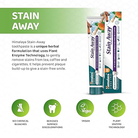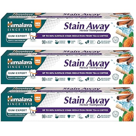Thông tin sản phẩm Himalaya Herbals Enamel Friendly Stain-Away Toothpaste | Protects Enamel, Removes Tea,Coffee Stains and Plague | Fights Germs, Multi-Action Toothpaste - 75ml (Pack of 3)