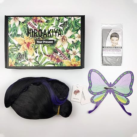 • HIROAKIYA Shinobu Kocho Cosplay Wig with Hair Clip, Wig Cap