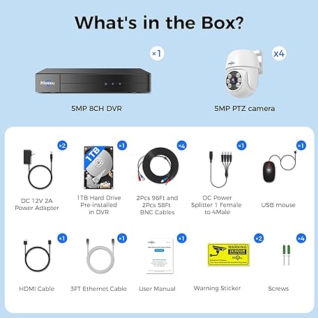 Thông tin sản phẩm Hiseeu Wired CCTV Security Camera System Outdoor, 8 Channel 5MP DVR with 4x PT Camera, Home Security Systems Night Vision, Motion Detection, 1TB Hard Drive, Remote Access, App Alert