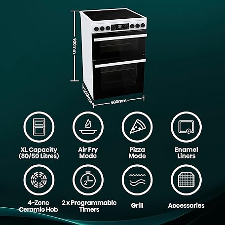 Sản phẩm Hisense HDUKC60W 60cm Electric Cooker with Ceramic Hob-White, A Rated Double Oven 50L/80L [Energy Class A] đang được bán với giá ưu đãi là $814.0447 tại nước Anh.