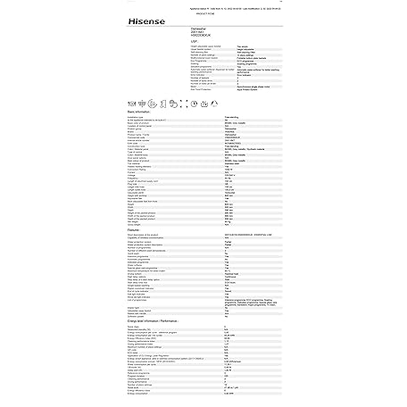 Thông tin sản phẩm Hisense HS622E90XUK Freestanding Standard Dishwasher 85cm High- Stainless Steel - E Rated, Silver, 24 x 23 x 33 inches (L x W x H) [Energy Class E]
