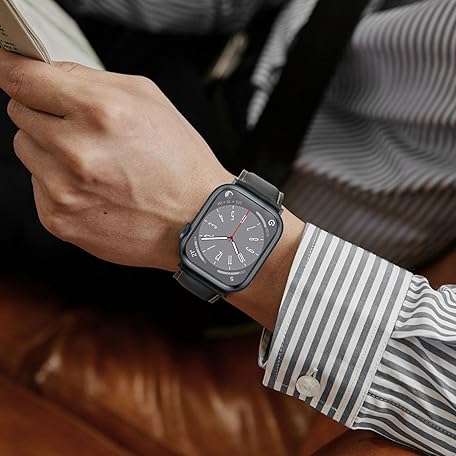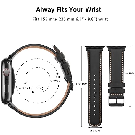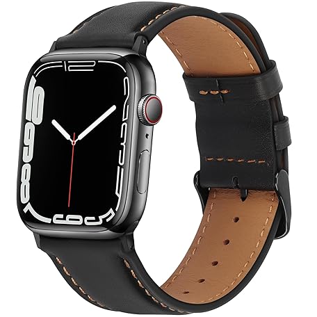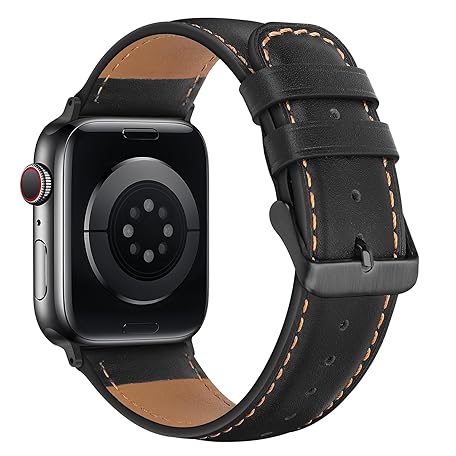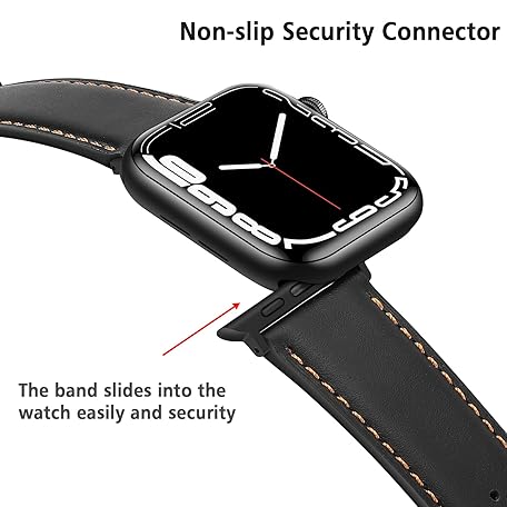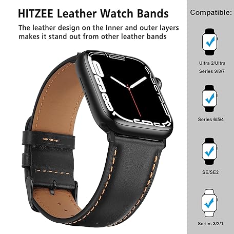 HITZEE Leather Straps Compatible with Apple Watch Strap 49mm 46mm 45mm 44mm 42mm for Women Men, Genuine Leather Band Compatible with Apple Watch Ultra 2 SE2 SE Series 10 9 8 7 6 5 4 3 2 1, Black