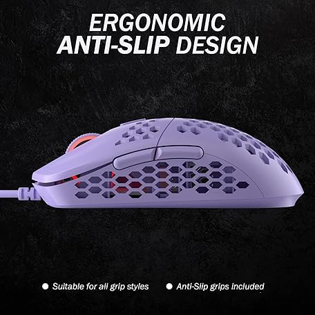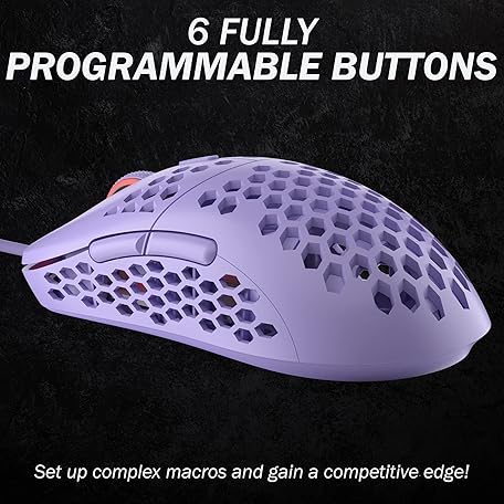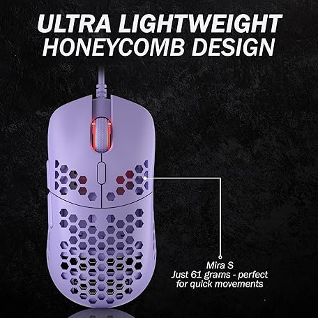 Sản phẩm HK Gaming Mira S Ultra Lightweight RGB Gaming Mouse | Honeycomb Shell | 61 grams | max 12000 cpi | USB Wired | 6 programmable Buttons | On-Board Memory | Anti Slip Grips | Mira-S Lavender đang được bán với giá ưu đãi là $75.8313 tại nước Anh.