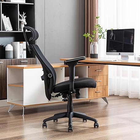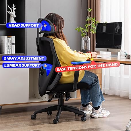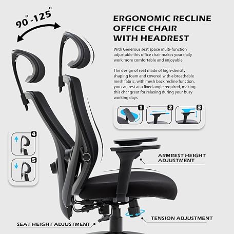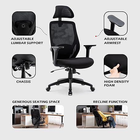 Thông tin sản phẩm HNNHOME Recline Ergonomic Office Chair with Back Support and Headrest, Tilt Function Position Lock, Home Office Computer Desk Chair with Lumbar Support, Breathable Mesh Executive Office Chair