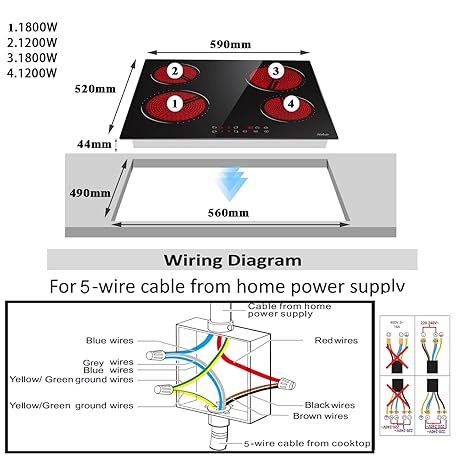 Sản phẩm Hobsir hob Ceramic Hob 60 cm Electric Hob 4 Zone with Touch Control 6000W 9 Power Levels Safety Lock Auto switch off safety Residual heat indicator Hard Wire, No Plug Included đang được bán với giá ưu đãi là $139.7162 tại nước Anh.