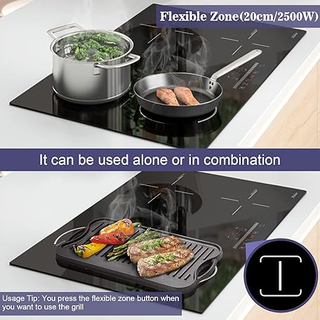 Thông tin sản phẩm Hobsir hob Plug in Induction Hob 4 Zones Plug in Electric Hob 60cm with Flexible Zone for Griddle Plate, Bulit-in, 2800W, Slider Touch, Timer, Child-safety Lock, Pause Function,13 Amp