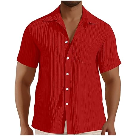 Holiday Shirts for Men Solid Color Shirts Trundown Collar Blouse Button Down Tops with Pocket Short Sleeve Lapel Shirt Tops Casual Hawaiian Textured Loose Fit Shirts Tops Outdoor Clearance