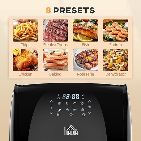 Thông tin sản phẩm HOMCOM 12L 8 in 1 Digital Air Fryer Oven with Roast, Bake, Dehydrate, 8 Preset Modes, Rapid Air Circulation, Timer, Inner Light, Memory Function, 1800W, Dish Wash Accessory, Black