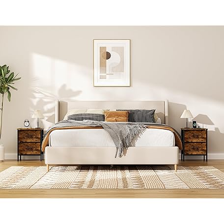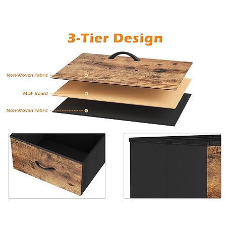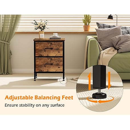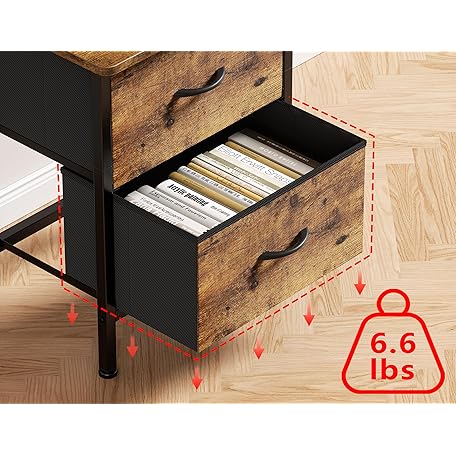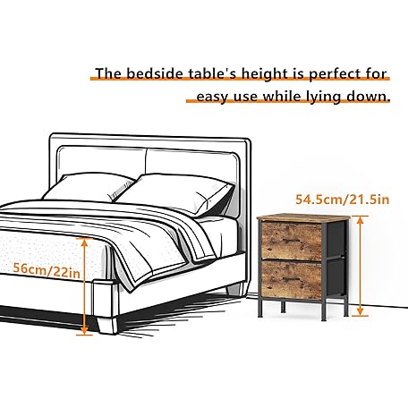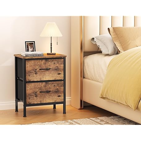 Thông tin sản phẩm HOMIDEC Bedside Table, Bedroom Bedside Cabinet, Storage Nightstand Side Table with Metal Frame and 2 Large Capacity Fabric Drawers for Bedroom, Living Room, Rustic Brown