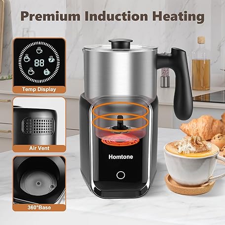 Thông tin sản phẩm Homtone Milk Frother 5-in-1, 600ml Induction Milk Frother with Smart Touch Screen, Detachable Stainless Steel Electric Milk Steamer for Hot Chocolate, Hot & Cold Foam, Warm Milk, Large Capacity, Black
