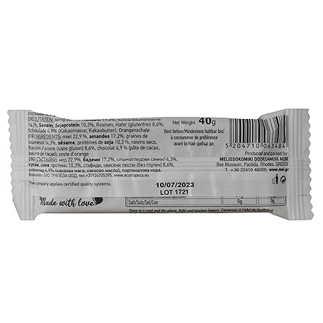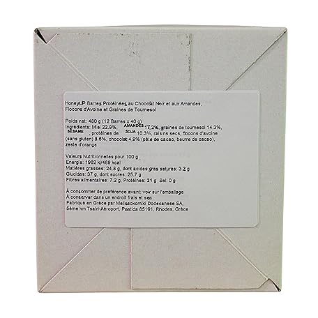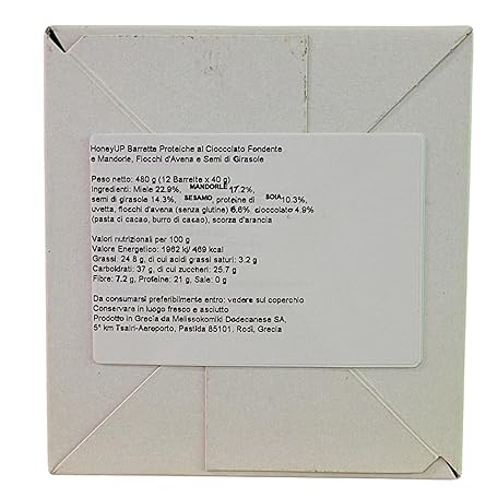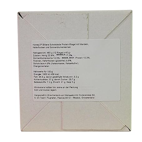 Thông tin sản phẩm HoneyUp Dark Chocolate Protein Bar with Almonds, Oat Flakes and Sunflower Seeds 40 g, Display Box with 12 Bars x 40 g (Total: 12 bars)