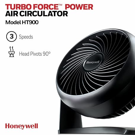Thông tin sản phẩm Honeywell TurboForce Power Fan (Quiet Operation Cooling, 90° Variable Tilt, 3 Speed Settings, Wall Mount Feature, Table Fan) HT900E