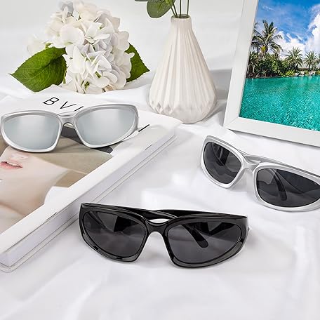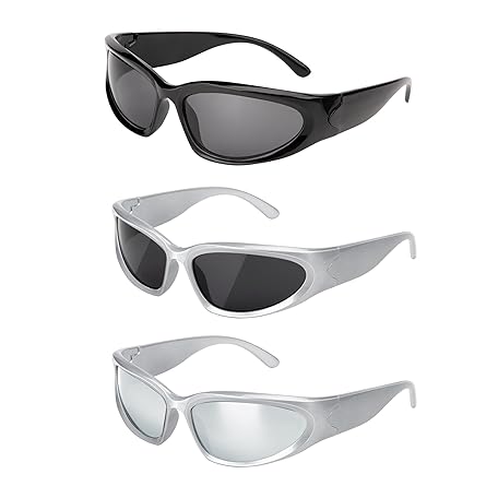 HONGXIN-SHOP Wrap Around Sport Sunglasses - Fashion Retro Y2K Oval Sunglasses - Unisex for Men & Women - 3 Pair