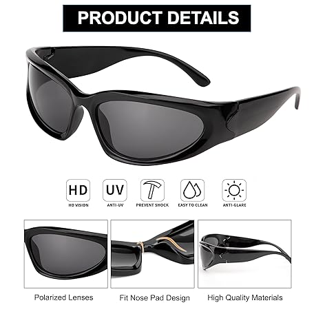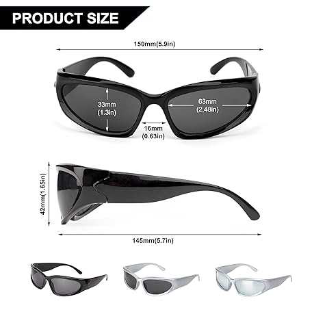 Thông tin sản phẩm HONGXIN-SHOP Wrap Around Sport Sunglasses - Fashion Retro Y2K Oval Sunglasses - Unisex for Men & Women - 3 Pair