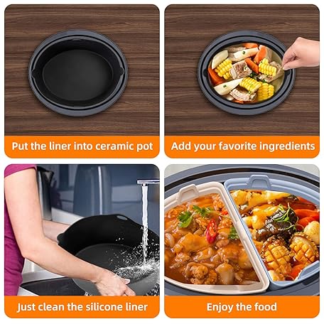 Thông tin sản phẩm Horuhue Silicone Liners Fit for Crock Pots/Slow Cookers 7-8 Quart, Slow Cooker Divider Insert Compatible for Crockpot Liner, Reusable/BPA Free/Leakproof/Cooking Accessories for Oval Crockpots