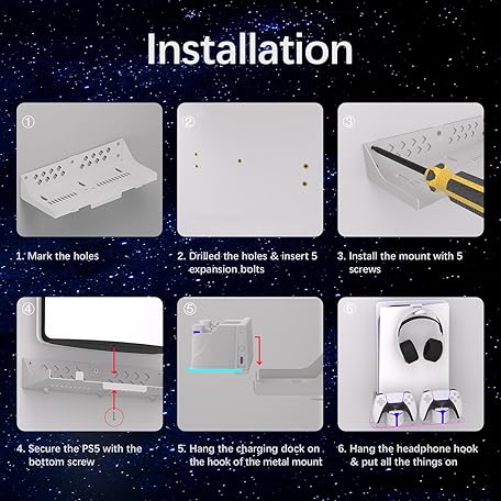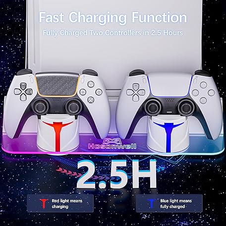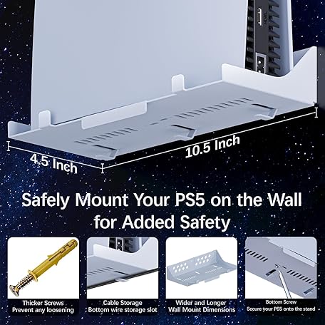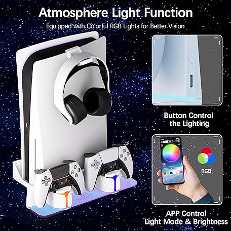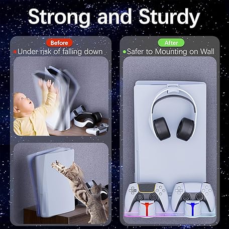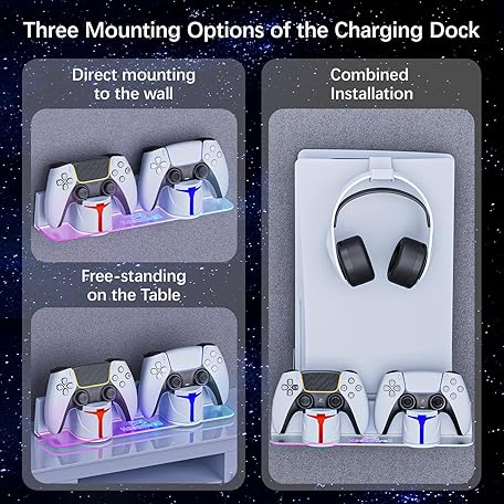 Thông tin sản phẩm Hosanwell PS5 Wall Mount for PS5/PS5 Pro/PS5 Slim Kit with Charging Station, Compatible with Disc & Digital Version, Dual Use Charging Station with Multi-mode RGB Light, White