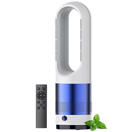 Thông tin sản phẩm Hot and Cool Bladeless Tower Fan with Remote, 18 Inch Oscillating Air Circulator with 8 Speeds & Timer, Air Purifier Fan for Home, Office, Bedroom, Gray blue