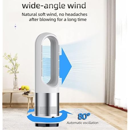 Thông tin sản phẩm Hot and Cool Tower Fan with Remote, 18 Inch Bladeless Fan Oscillating 80°, 8 Speeds, 8H Timer, LED Display, air circulating Fan, Air Purifier Standing Fans for Indoor Home Bedroom Office gray