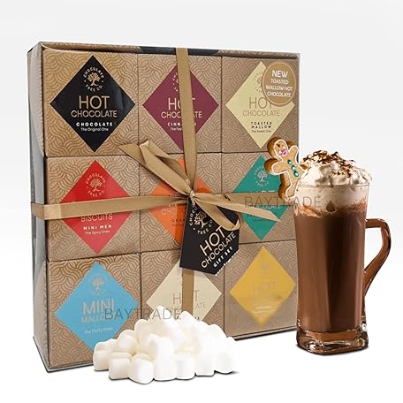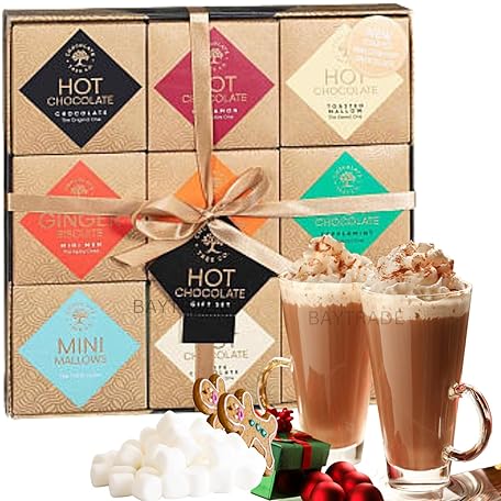 Sản phẩm Hot Chocolate Gift Set | 9 Luxury Cocoa Powder Flavours Mini Marshmallows Gingerbread Men Biscuits | House Gifts for Couples Women Men Xmas Gifts for Kids Teens Drinking Chocolate Selection Boxes (5) đang được bán với giá ưu đãi là $22.1488 tại nước Anh.