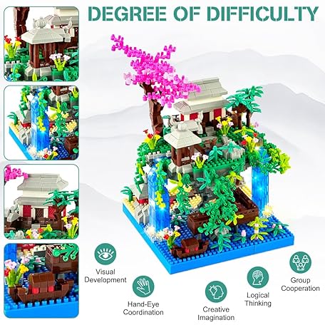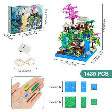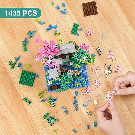 Thông tin sản phẩm HOTUT Cherry Blossom Tree Building Set, Japanese Sakura House Lights Kit 1435 Pcs, Micro Bonsai Building Brick Gift for Adults Kids
