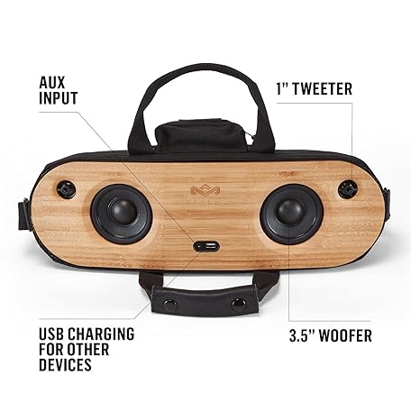 Thông tin sản phẩm House of Marley Bag of Riddim 2 – Bluetooth Speaker Portable Bamboo Audio Sound System + REWIND Fabric Travel Bag, Faceplate, Aux-In, Easy Charge USB Port, 10 Hrs Play Time Battery Life