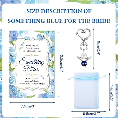 Thông tin sản phẩm HOWAF Something Blue for The Bride, Blue Angels Bouquet Charm Blue Pearl Angel for The Bride Wedding Bouquet Charms with Wedding Card for Bride to Be Gifts, Bridal Gifts, Bride Gifts for Wedding Day