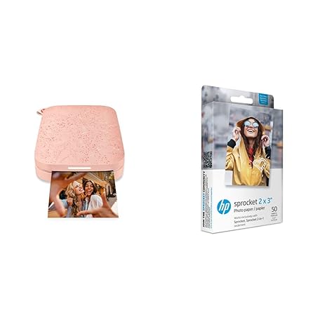 HP Sprocket Portable Photo Printer (Blush Pink) + HP 2x3" Premium Zink Photo Paper (50 Sheets) Compatible with HP Sprocket Portable Photo Printer
