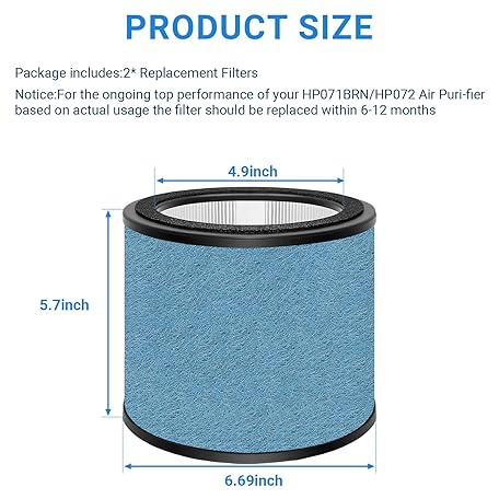 Thông tin sản phẩm HP072 HP071BRN Filter Replacement for Shark NeverChange Air Puri-fier Compact Pro HP072, HP071BRN, HP070, HP072QGD, HP072UGN, HP072C Air Activated Carbon Filter(2 Pack)