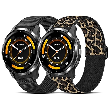 HQzon 2 Pack Elastic Band Compatible with Garmin Venu 3S/Vivoactive 4S/Venu 2S/Vivomove 3S, 18mm Adjustable Nylon Sport Strap for Forerunner 265S/255S Men and Women
