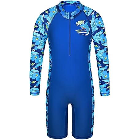 HUAANIUE Boys Swimming Short Sleeve Swimsuit 3-12Y Kids One Piece Swimwear Navy Sun Protection 50+ Swim Clothes UPF Warm Sportwear Costume Summer Surfing