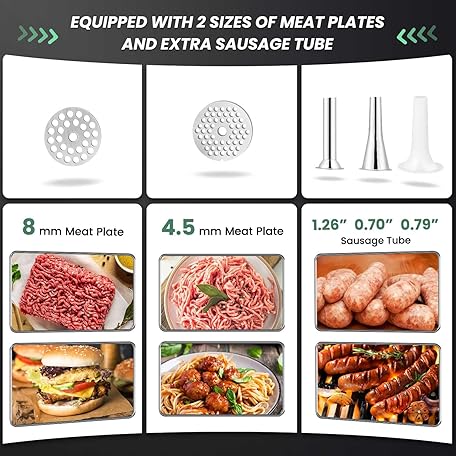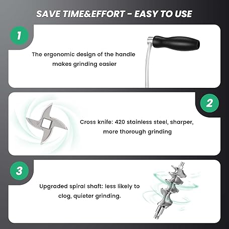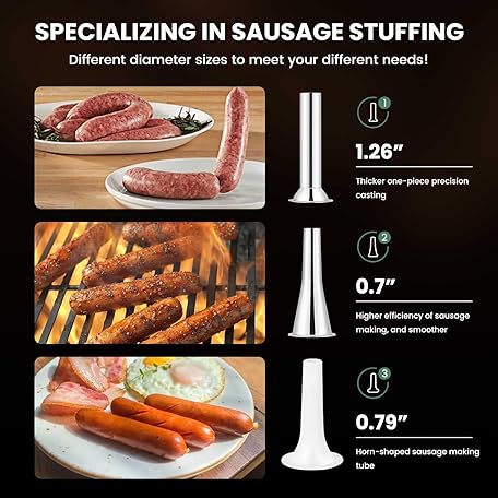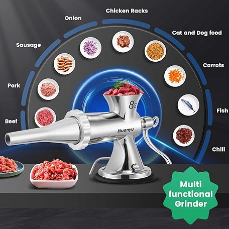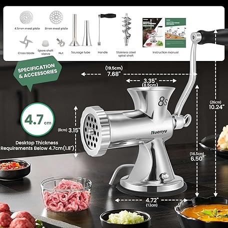 Thông tin sản phẩm Huanyu Meat Grinder & Sausage Stuffer Stainless Steel Manual Meat Grinder Sausage Filler Filling Machine for Pork, Beef, Fish, Chicken Rack, Pepper, Mushrooms, Long Beans, ect. (With Two Enema Mouths)
