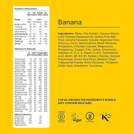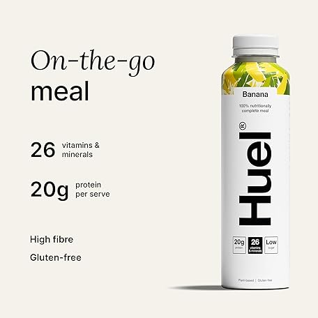 Thông tin sản phẩm Huel Ready-to-Drink Meal, Banana Protein Drink, 8 x 500ml Bottles, Protein Shakes, Pre-Portioned Meal, 20g of Protein per Bottle, Rich in Essential Vitamins, Minerals and Fibre Meal Replacement Shake