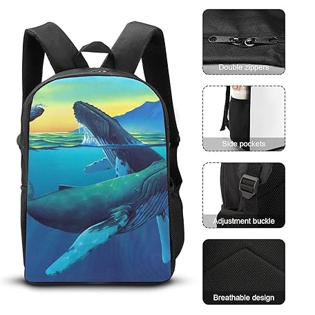 Sản phẩm Humpback Whales Wonderland Printed Backpack 17 Inch Shoulders Daypack Large Capacity Laptop Bag for Men Women đang được bán với giá ưu đãi là $32.918 tại nước Anh.