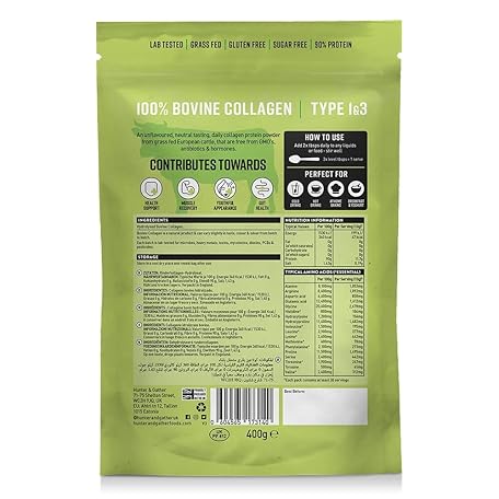 Sản phẩm Hunter & Gather Grass Fed Bovine Collagen Powder 400g | Pure Unflavoured Premium Hydrolysed Bovine Collagen Peptides Powder for Hair Skin Nails Muscles | Collagen Supplements for Women and Men đang được bán với giá ưu đãi là $34.4222 tại nước Anh.
