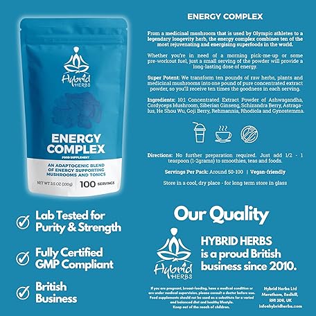 Sản phẩm HYBRID HERBS - Energy Complex | Adaptogen Blend of Ashwagandha, Cordyceps, Siberian Ginseng, Schizandra, Astragalus, He Shou Wu, Goji Berry, Rehmannia, Rhodiola, Gynostemma | 100 Servings (100g) đang được bán với giá ưu đãi là $42.4664 tại nước Anh.