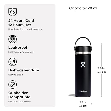 Thương hiệu Hydro Flask là cái tên nổi tiếng được rất nhiều khách hàng trên thế giới chọn lựa. Với kiểu dáng đẹp mắt, sang trọng, sản phẩm HYDRO FLASK - Water Bottle 591 ml (20 oz) - Vacuum Insulated Stainless Steel Water Bottle with Leak Proof Flex Cap and Powder Coat - BPA-Free - Wide Mouth - White là sự lựa chọn hoàn hảo nếu bạn đang tìm mua một món cho riêng mình.
