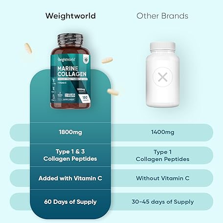 Thương hiệu WeightWorld là cái tên nổi tiếng được rất nhiều khách hàng trên thế giới chọn lựa. Với kiểu dáng đẹp mắt, sang trọng, sản phẩm Hydrolysed Marine Collagen Tablets 1800mg - 2 Months Supply - Type I & III Peptides - with Vitamin C - 180 Tablets - Gluten-Free & Lactose-Free Collagen Supplements for Women & Men - Made in The UK là sự lựa chọn hoàn hảo nếu bạn đang tìm mua một món cho riêng mình.