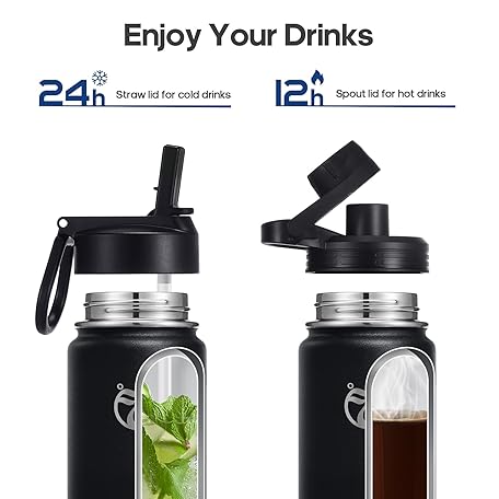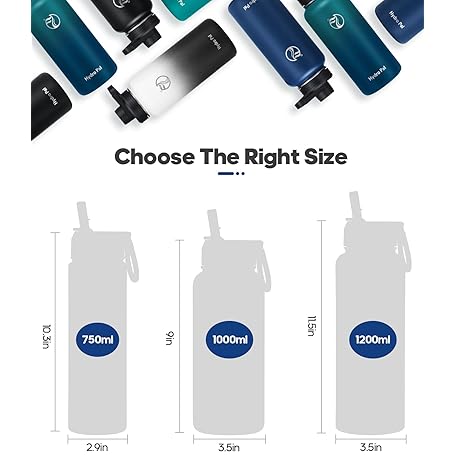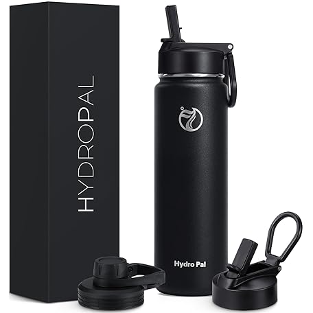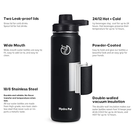 Thông tin sản phẩm HydroPal Vacuum Insulated Water Bottle 1200ml/1000ml/750ml/500ml, 2 Lids (Straw & Spout), 12H Hot 24H Cold, BPA Free Stainless Steel Bottle, Leakproof Sports Water Bottle for Gym, Travel, Work