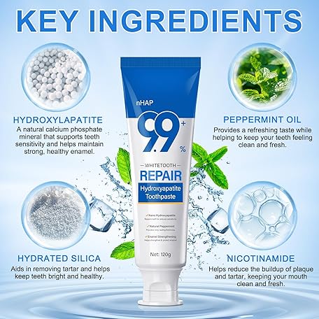 Thông tin sản phẩm Hydroxyapatite Toothpaste, 9.9% Hydroxyapatite Toothpaste for Enamel Protection, Fluoride-Free, Enamel Repair, Sensitivity Relief, Cavity Prevention, Fresh Breath