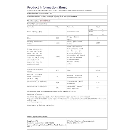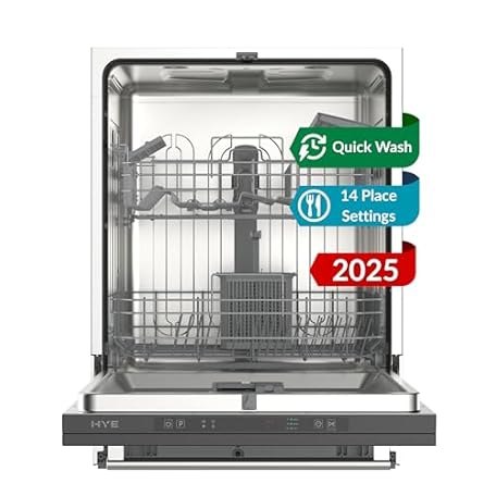 Thông tin sản phẩm HYE Fully Integrated Dishwasher 60cm – Built In Dishwasher, 14 Place Settings, Quick Wash 29 Mins, 49dB Quiet Operation, Energy Rated E, Silver - DW01B14PS19 [2025]