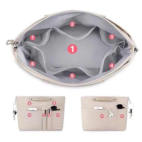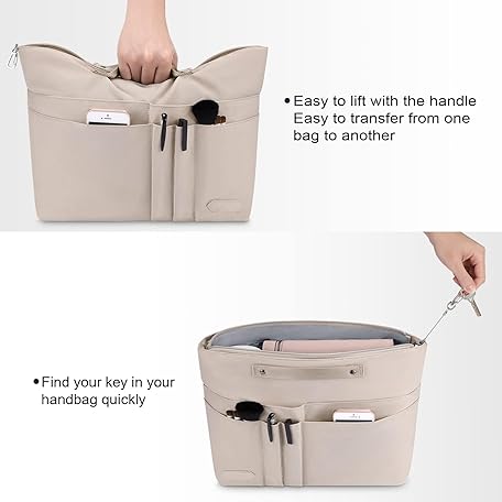 Thông tin sản phẩm HyFanStr Bag Organizer for Handbags,Tote Bag Organizer Insert Zipper Bag for Women, Handbag Organizer Inside Liner with 15 Pockets, Beige, M