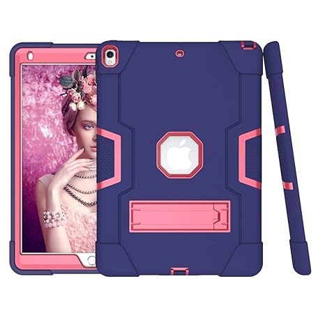 • HyFone Case for iPad Air 3, iPad Pro 10.5" - Rugged Sturdy Shockproof Heavy Duty Durable Full Body Protective Kickstand Cover Case for A2123 A2152 A2153 A2154 A1701 A1709 A1852 - [NavyBlue/RoseRed]
